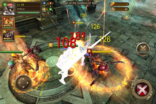 Управление в игре осуществляется при помощи наэкранного джойстика, основные кнопки: это действие и стрелки. Есть функция "Авто-комбат", нажав которую, вы сможете расслабиться, и посмотреть, как ваш герой сам сражается.