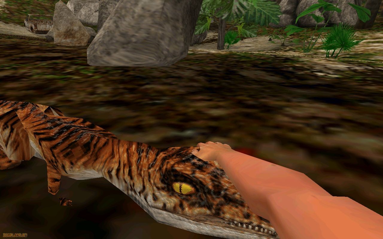 Jurassic Park: Trespasser ![]() Жанр: FPS симулятор выживания Разработчик: DreamWorks Interactive Издатель: Electronic Arts Дата выхода: 28 октября 1998 года А не повторить ли нам эксперимент? В свое время невиданный успех фантастического фильма "Парк Юрского периода" за режиссерством увлеченного своим делом Стивена Спилберга произвел резонанс не только в киноиндустрии, но и в игровой. Франчайз породил немало игр как для консолей (в основном, аркады, но позже был и динофайтинг(!)), так и для ПК, среди которых есть одна, наделавшая в свое время немало шума и воспринятая многими игроками как шедевр (пусть и неоконченный, но об этом ниже) и прорыв в жанре. Да что там, в жанре, это был прорыв в индустрии! Как мы знаем, оглушительный успех картины подтолкнул Спилберга к съемкам сиквела. Тем временем, двое бывших сотрудников Looking Glass Technologies геймдизайнеры Шимус Блэкли и Остин Гроссман смекнули, что неплохо бы сопрячь выход на экраны второго фильма с компьютерной игрой - прибыль это обещало весомую. Ну да Бог с ней с прибылью, это не главное, ведь за словом "Trespasser" стоял масштаб происходящего и немало интереснейших идей. Переговорив со Спилбергом еще за два года до выпуска сиквела фильма и получив его согласие на лицензирование и курирование проекта, Бэкли и Гроссман собрали команду и принялись за дело... Сюжет Незатейливый. Спустя год после событий фильма "Затерянный мир", главная героиня по имени Энн банально отправляется в тропики на отдых. Разумеется, она уже наслышана о событиях на острове Isla Nublar ("Объект А"), неудачном эксперименте и разрушенном парке с динозаврами. Самолет героини по не зависящим от меня причинам терпит крушение. Очнувшись, Энн обнаруживает себя на берегу необитаемого острова, который к ее ужасу оказывается засекреченным "Объектом Б", на котором горе-генетики выращивали древних монстров. В кратчайшие сроки незадачливой туристке придется найти на острове хоть какое-то средство связи, вызвать кого-нибудь на помощь и убраться отсюда к чертям. А не то отпуск будет безнадежно испорчен. Глазами туриста Вокруг красиво (с поправкой на 98-ой год). Первое, на что хочется обратить внимание - отнюдь не тропическая растительность, а тело героини. В других играх от первого лица вы не увидите туловища и ног персонажа, которым играете - фактически приходится играть летающей камерой с растущими из нее руками, держащими оружие. Trespasser - другое дело! К радости мужской части аудитории, взглянув вниз, можно обнаружить грудь Энн, да еще и с татуировкой в форме сердечка.Татуировка, кстати, выступает не только в роли украшения, но и служит индикатором физического благополучия героини, становясь красной от полученных повреждений. Ну все, хватит любоваться своими прелестями, пора и честь знать. Топая по острову (а к вожделенному пункту эвакуации придется потопать немало - территория огромная), найдет немало следов человеческого присутствия - тут тебе и заброшенные тренировочные базы, и центр, в котором разводили динозавров, и даже недостроенный монорельс - владелец злачного заведения Джон Хэммонд в свое время вбухал в строительство комплекса немалые бабки и зрелище обещало предстать фееричным, но не судьба. Вид заброшенных построек наводит некоторую тоску и ощущение одиночества, хотя тем интереснее, хочется знать "а что там дальше?". Однако, не это главное. Остров, на котором происходит де